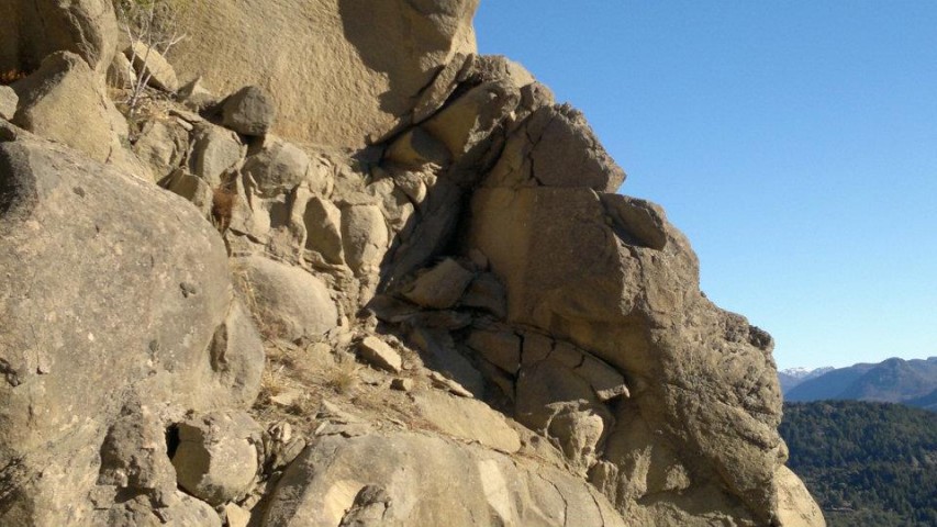 El objetivo de la tarea fue el de conocer el estado del piedrero que se encuentra en el extremo superior de la extensa pared de piedra de donde cayeron las rocas.