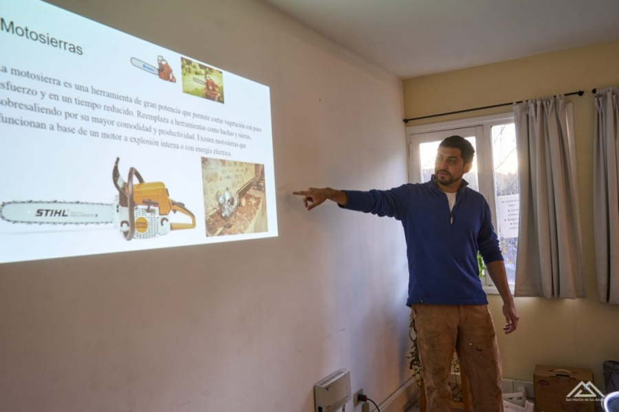 La Fundación Tierras Patagónicas junto al área de Protección Civil del Municipio local brindaron un taller sobre uso de motosierras y técnicas básicas de apeo de árboles. Fue el viernes 13 y sábado 14, en instalaciones del Ensatur.