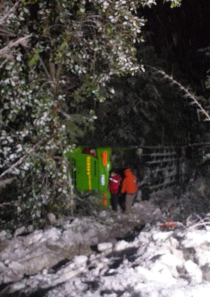 El siniestro víal sucedió anoche cuando un colectivo de la empresa Via Bariloche (Albus), que circulaba sobre la Ruta 40, volcó y quedó de costado sobre la calzada. Un hombre que transitaba en su traffic, vio el accidente y decidió auxiliar a 15 pasajeros a los que llevó hasta la terminal de villa la Angostura.