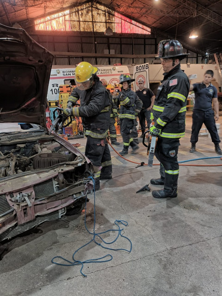Desde el martes 10 hasta el viernes 20 de enero se desarrollaron actividades de intercambio de conocimientos en temas como incendios compartimentalizados, programas de prevención y capacitación comunitaria, ventilación de incendios, rescate con cuerdas, uso de escaleras, rescate vehicular, uso de camaras térmicas, contabilidad de personal, técnicas de búsqueda y rescate.