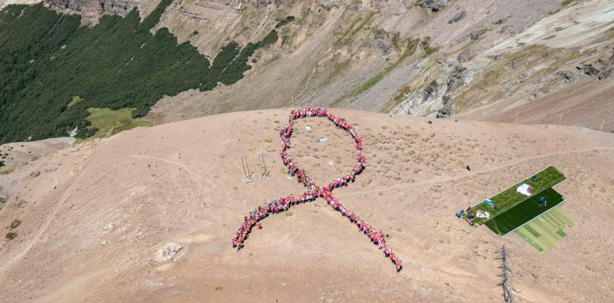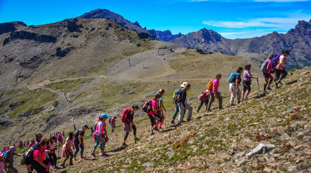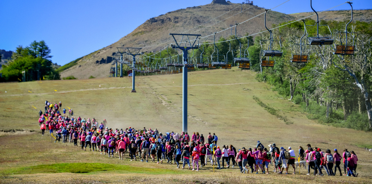 El recorrido en ascenso se realizó por senderos del bosque de Chapelco y por sus pistas con la consigna de llevar el color rosa en la vestimenta. Una vez en la cumbre, formaron el símbolo del “lazo rosa humano” de la lucha contra esta enfermedad.