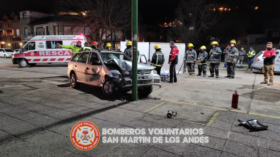 Producto del fuerte impacto el Volkswagen Country desvió su trayectoria e impactó contra una columna de alumbrado público.
