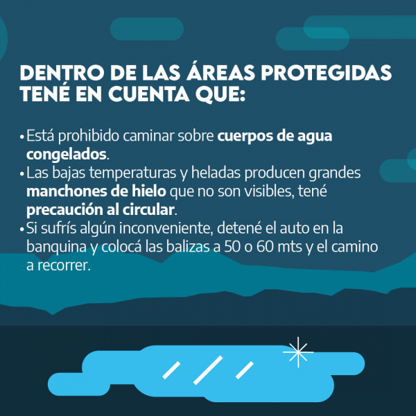 Por tal motivo y hasta que cambien las condiciones climáticas se solicita a las y los visitantes circular con extrema precaución dentro de la jurisdicción del Parque Nacional Lanín.
