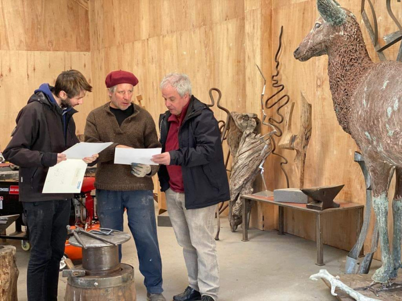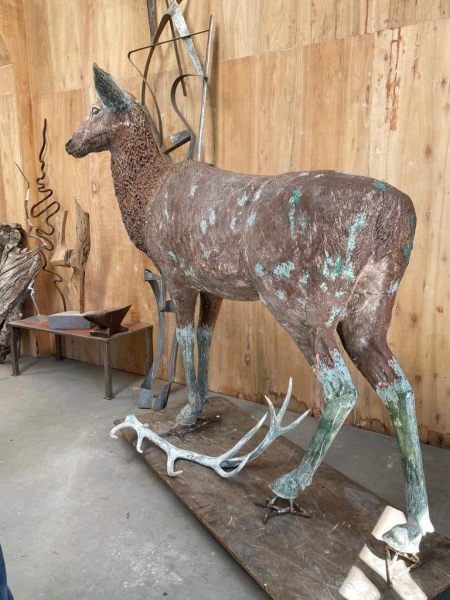 También se rellenaron las extremidades con cemento, para darle más solidez a la estructura, y la cornamenta del ciervo macho fue elaborada con la misma técnica.