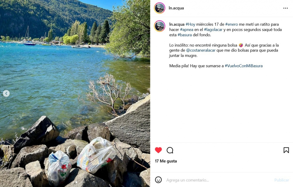 Lo afirmó Agustín Roca, presidente de la Asociación Hotelera Gastronómica de San Martín de los Andes (AHGSMA), al referirse a la campaña de Turismo Responsable que está desplegando la entidad junto a la Secretaría de Turismo local bajo el lema "Yo cuido las montañas & los lagos y vuelvo con mi basura". Los usuarios de redes sociales se sumaron a la iniciativa y compartieron fotos de la basura que hay en el lago y en las calles.