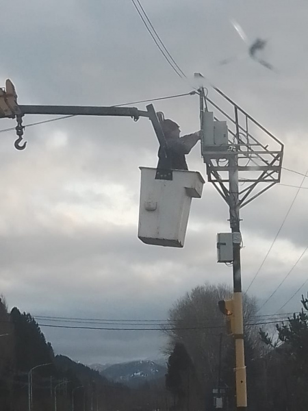 Una comisión del Municipio de Neuquén, del sector de Semaforización a cargo de su director, Alberto Mardones, realizó tareas de mantenimiento de los dos puntos de semáforos existentes en el ejido municipal de San Martín de los Andes: Escuela N° 86 "Batalla de Maipu" y CPEM 28.