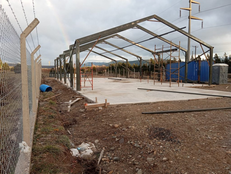 La obra, ubicada a escasos metros de la Ruta Nacional 40, muestra la platea terminada, el alambrado perimetral, la estructura de hierro sobre la que se montará el destacamento y el tanque australiano que almacenará agua para eventualmente abastecer helicópteros con balde.