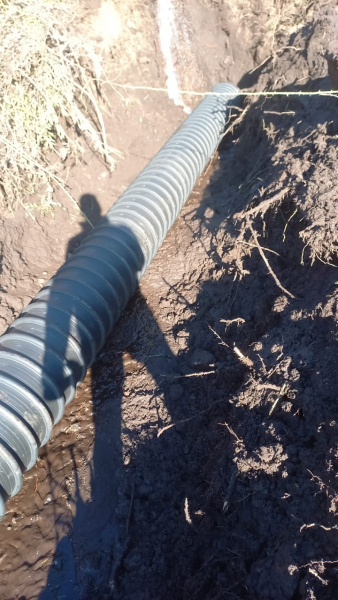 Varios organismos del Municipio trabajaron este viernes junto a vecinas y vecinos en la apertura de calles y colocación de alcantarillas en el barrio El Trébol.