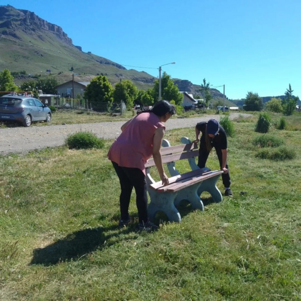 Durante la jornada se realizaron tareas de desmalezado, limpieza del lugar, instalación de bancos de plaza y la pintada de un mural, con el objetivo de embellecer el espacio público y prepararlo para los eventos comunitarios previstos.