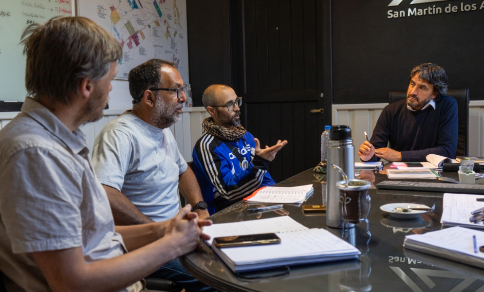 De la reunión con el intendente Saloniti participaron el concejal Santiago Fernández, los funcionarios del Instituto de Vivienda y Hábitat del Municipio Alejandra De Bonis y Ramiro Morel y, por el barrio El Trébol, Mariana Rizzo; Patricio Pérez y Marcelo Fernández.