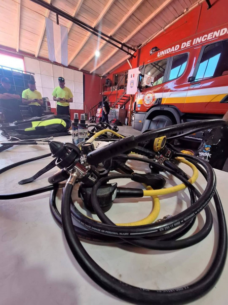 Además de la formación, la visita del SPAI se destacó por la entrega de equipamiento esencial para el cuartel de San Martín de los Andes. La donación incluyó material de altura y equipos de buceo, fundamentales para mejorar la capacidad operativa en estas especialidades.