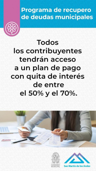 La Secretaría de Economía y Hacienda del Municipio recuerda a los contribuyentes que el próximo 31 de octubre finaliza el plazo para adherirse al Programa de recupero de deudas municipales, que ofrece importantes quitas sobre los intereses adeudados.