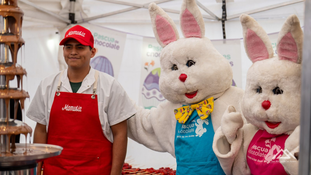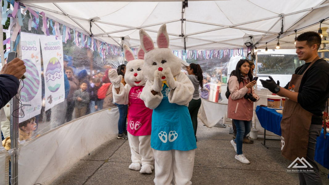 Uno de los puntos más concurridos fueron las cascadas de chocolate y el chocolate caliente, donde las familias esperaron con entusiasmo para disfrutar del producto insignia de nuestra región. Los Conejos de Pascua recorrieron el predio repartiendo abrazos y posando para miles de fotos y videos que inundaron las redes sociales.
