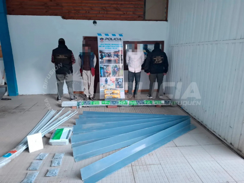El primero de los allanamientos tuvo lugar en un comercio del rubro panadería. Allí, los efectivos lograron incautar una importante cantidad de materiales de construcción, entre los que se destacan piezas galvanizadas y bolsas de adhesivo para piso. Sin embargo, el hallazgo más relevante para el avance de la causa fue un sistema de videovigilancia con su respectiva memoria de almacenamiento, el cual será peritado para obtener pruebas directas.