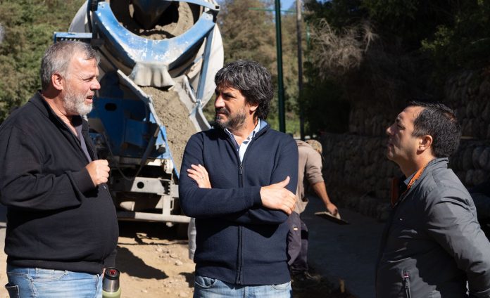 El intendente Carlos Saloniti recorrió este martes las obras de la senda peatonal de unos 500 metros que unirá la Epet 21, en el Barrio Intercultural, con la rotonda de la calle Perito Moreno y la Ruta Provincial N°48.