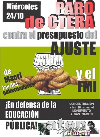Es en repudio al Presupuesto 2019 que presentó el gobierno de Mauricio Macri.A nivel local habria paro en la Sucursal del Banco Nación y hay convocatoria de ATEN SMAndes