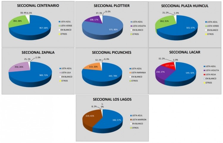 Las elecciones internas partidarias se desarrollaron ayer en la Escuela 5 de nuestra ciudad, con la participación de 934 afiliados. La lista encabezada por Carlos Saloniti y Eliana Rivera presidirá la Seccional Lácar tras obtener el 58.8 por ciento de los votos, seguida de la Violeta, con 27.6 y la Roja, con 13.6.