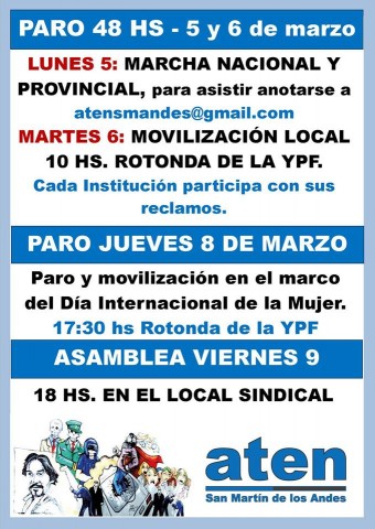 Mientras que hoy y mañana la actividad en gran parte de las escuelas debió ser reprogramada, el gremio convoca a movilizaciones nacionales y locales, que se repetirán también el jueves por el Día Internacional de la Mujer.