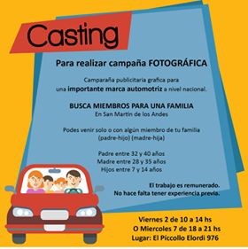 Se realizará hoy viernes y el próximo miércoles 7 de febrero, para participar de una campaña fotográfica de una importante marca automotriz a nivel nacional.