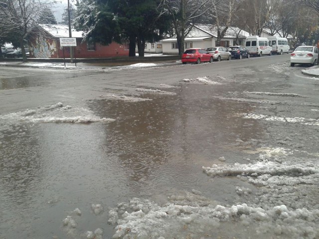 Las intensas lluvias y nevadas de ayer ocasionaron importantes problemas para los vecinos de la ciudad, ante la aparente insuficiencia de los desagües pluviales.