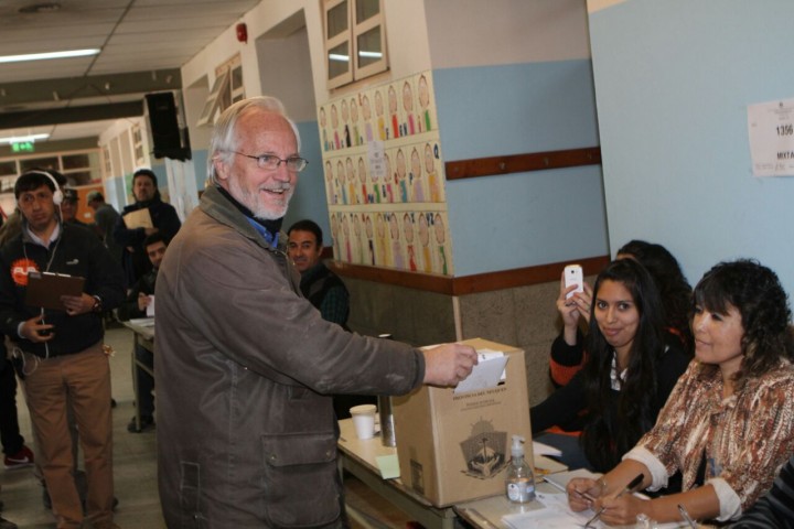 El candidato del Pro y NCN, fue el primero de los candidatos en emitir su voto esta mañana en la escuela de la Vega San Martín.