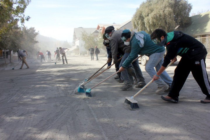 Tras la reunión del Comité de Emergencia se dispuso un operativo a cargo de la Secretaría de Obras y Servicios Públicos para realizar la limpieza y recolección de material volcánico en distintos puntos de la ciudad. Los vecinos, salieron esta mañana a limpiar sus veredas también.