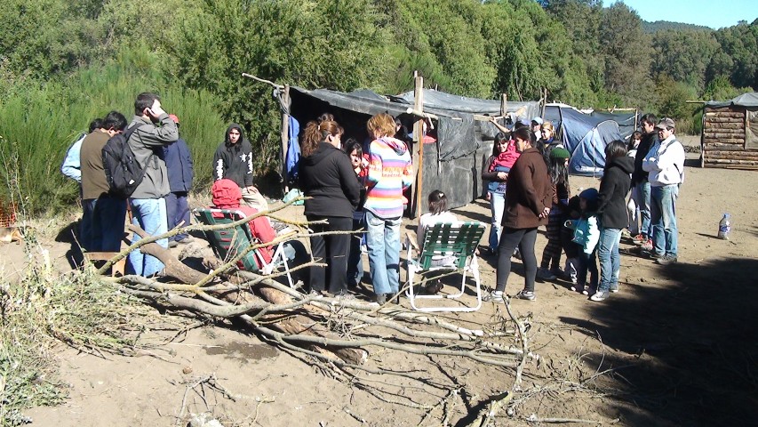Es en el paraje Newen Antú, detrás del hotel Sol. A partir de que unas personas comenzaron a limpiar unos terrenos, miembros de la comunidad mapuche llegaron al lugar para encontrarse con supuestos compradores de parcelas.