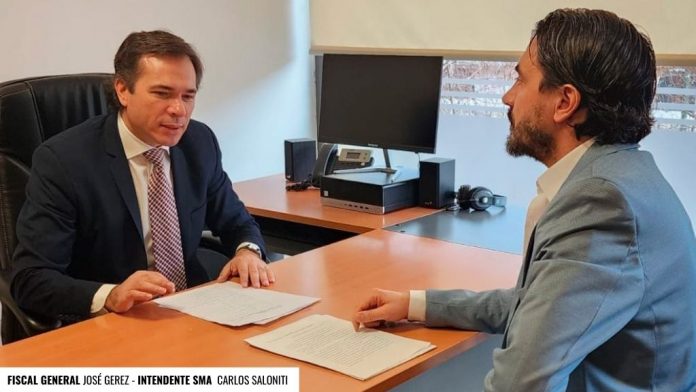 El fiscal general José Gerez y el intendente Carlos Saloniti se reunieron este jueves 14 de septiembre en la sede del Ministerio Público Fiscal de San Martín de los Andes.