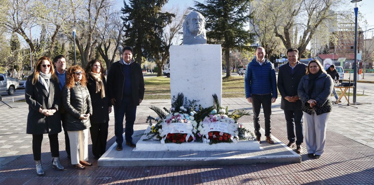 El gobernador y el intendente Mariano Gaido entregaron una ofrenda floral en el monumento a Domingo Faustino Sarmiento.