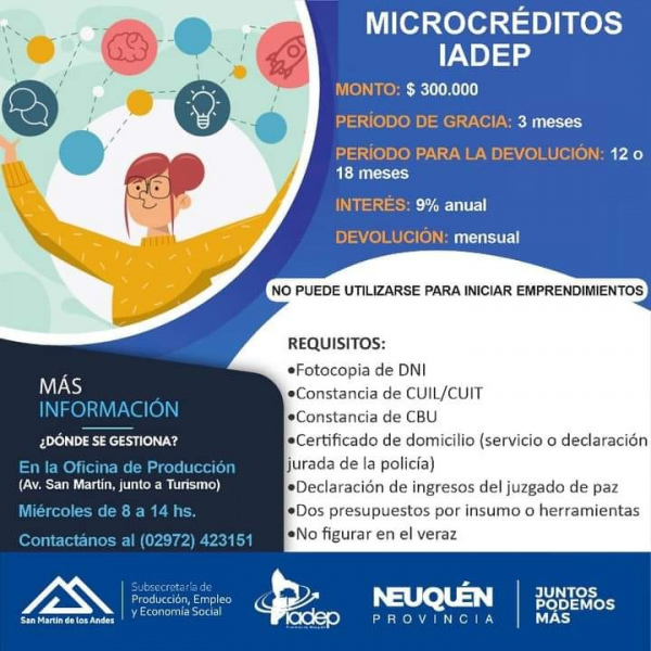 Ofrecen una línea de crédito destinada a fortalecer emprendimientos locales, con montos de 300 mil pesos, tasa de interés mínima del 9 por ciento y financiación de hasta 18 meses.