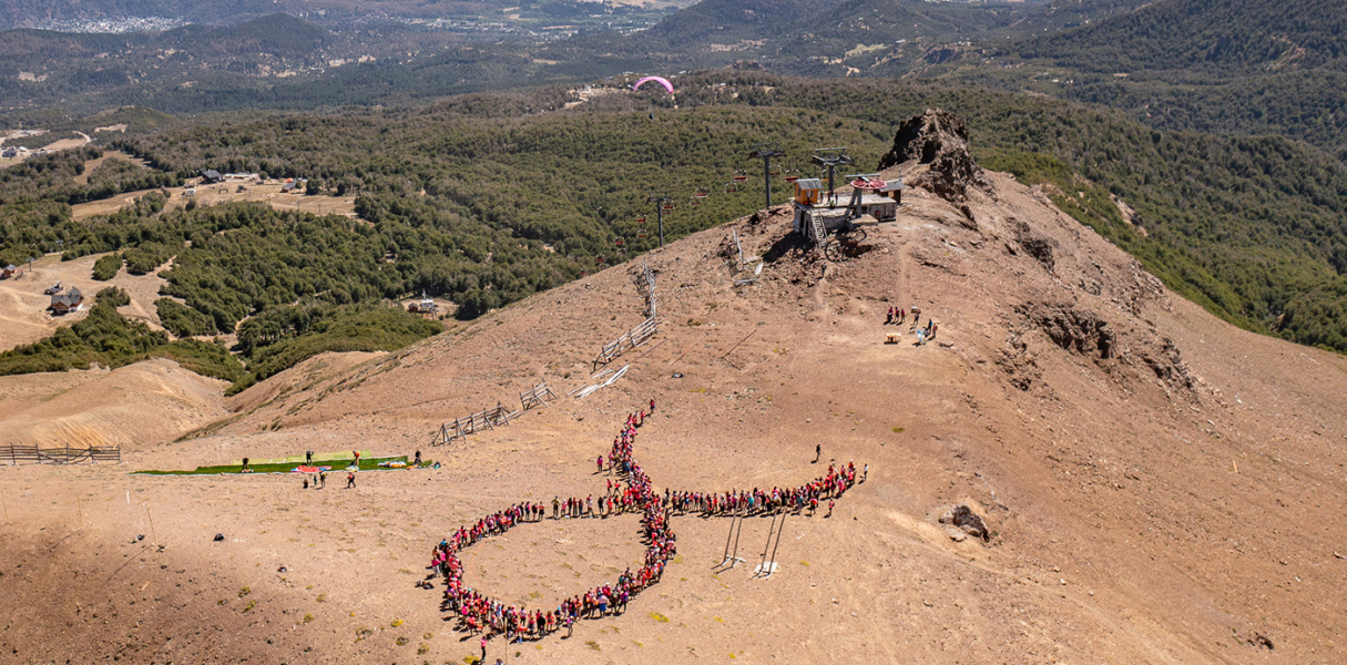 El recorrido en ascenso se realizó por senderos y pistas de Chapelco con la consigna de llevar el color rosa en la vestimenta. Una vez en la cumbre, formaron el símbolo del “lazo rosa humano” de la lucha contra esta enfermedad.