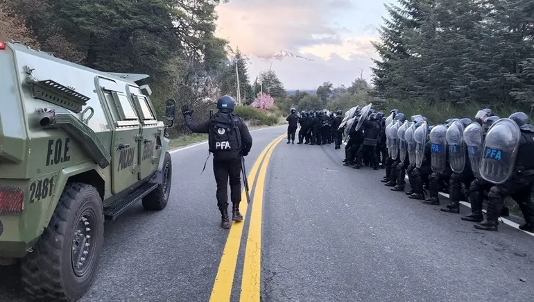 Policía Federal, Gendarmería y Prefectura están en la zona de conflicto, a unos 45 kilómetros de Bariloche. Hay 6 mujeres detenidas y detonaciones. La ruta 40 permanece cortada.