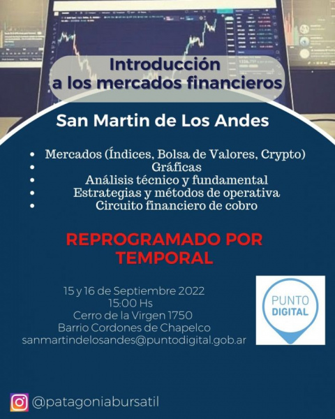 Con cupos limitados, se dictará este jueves 15 y viernes 16 de septiembre, a las 15 horas, en el Punto ubicado en Cerro de la Virgen 1750 de Cordones del Chapelco.
