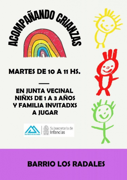 La Subsecretaría de Infancias invita a las familias con niños y niñas de entre 1 y 3 años a participar de los encuentros que comienzan esta semana, así como a sumarse al que ya se encuentra en funcionamiento.