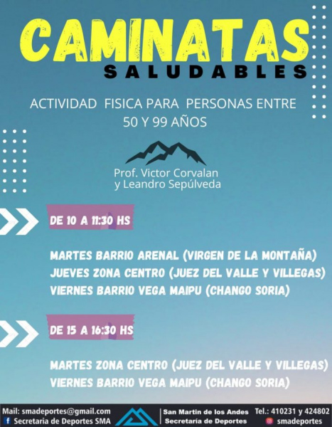 La Secretaría de Deportes invita a participar de una nueva actividad libre y gratuita: se trata de “Caminatas Saludables”, orientadas a hombres y mujeres a partir de los 50 años.