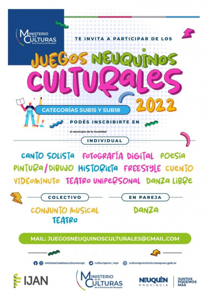 La Secretaría de Cultura municipal informa que se encuentra abierta la inscripción para participar en la instancia local de los Juegos Neuquinos Culturales 2022.