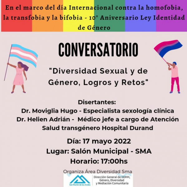 Se trata de una actividad organizada en el marco del Día Internacional contra la homofobia, transfobia y bifobia – 10° Aniversario Ley Identidad de Género.