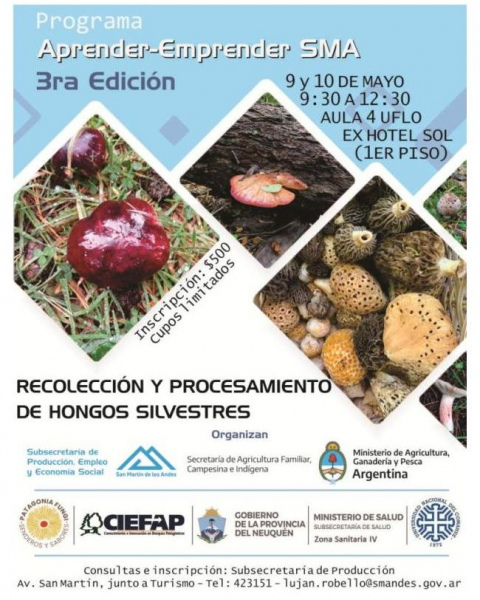 Se informa a la comunidad que se desarrollará la tercera edición del Programa Aprender-Emprender en San Martín de los Andes, que nuevamente tendrá como eje al Taller de “Recolección y procesamiento de hongos silvestres”.