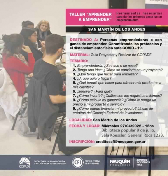 Desde la Subsecretaría de Producción, Empleo y Economía Social se invita a participar del un nuevo taller “Aprender a Emprender”.