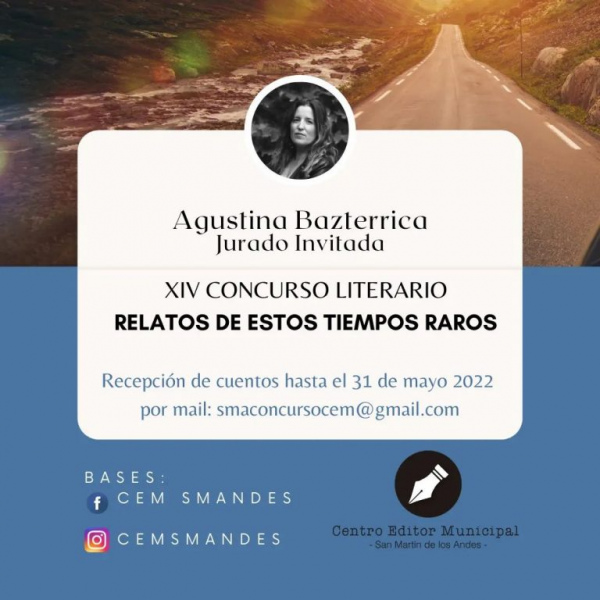 El Centro Editor Municipal (CEM) invita a escritores y escritoras de San Martín de los Andes a participar de su XIV concurso literario, “Relatos de estos tiempos raros”.