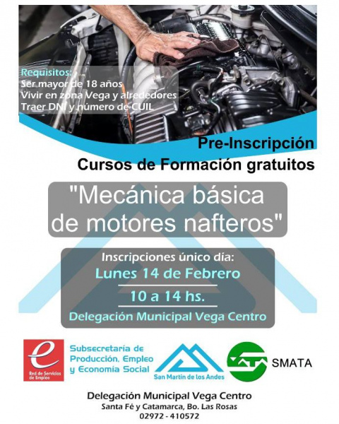 Se realizará en San Martín de los Andes un curso de “Mecánica básica de motores nafteros”, dictado por el Sindicato de Mecánicos y Afines del Transporte Automotor (SMATA).