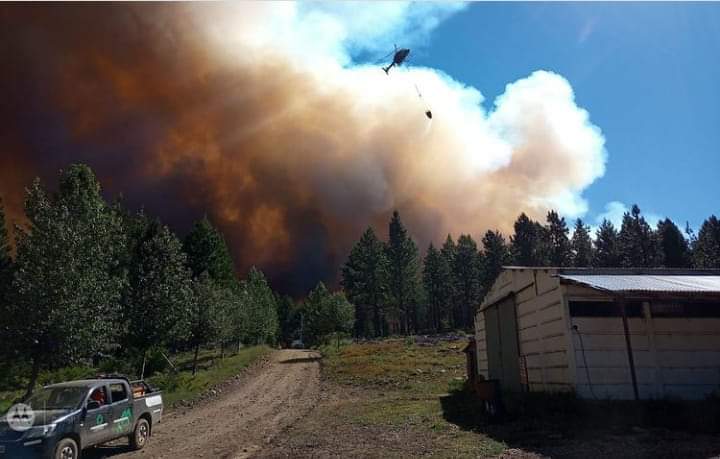 El incendio en Quillén continúa descontrolado pese a los esfuerzos de los brigadistas