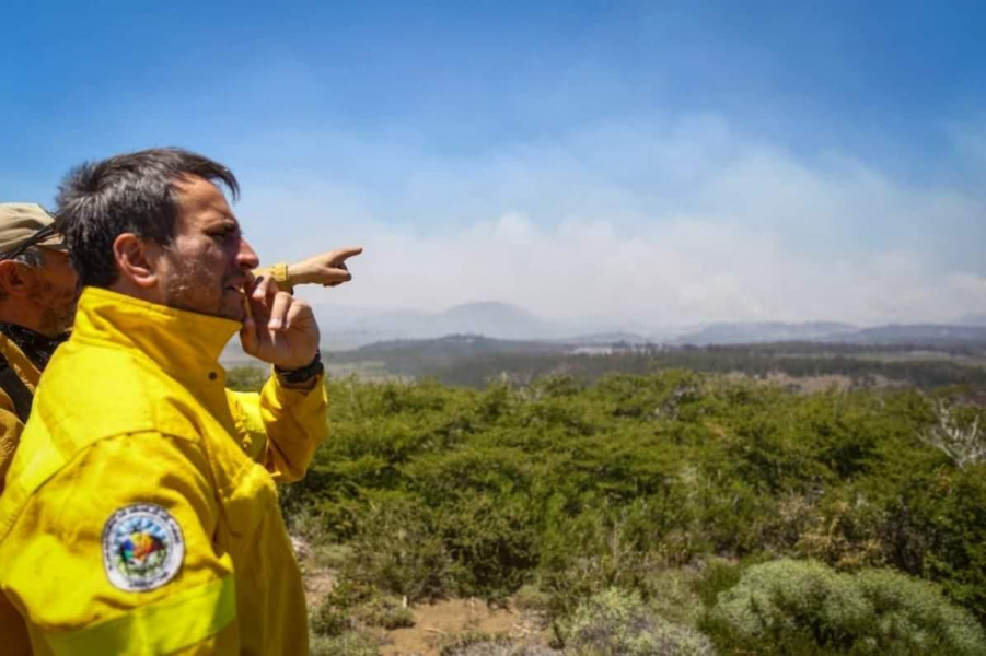 El gobernador monitorea el desarrollo del incendio que afecta desde hace varios días y que se ha visto potenciado por las características topográficas, la rotación del viento y las altas temperaturas vigentes.