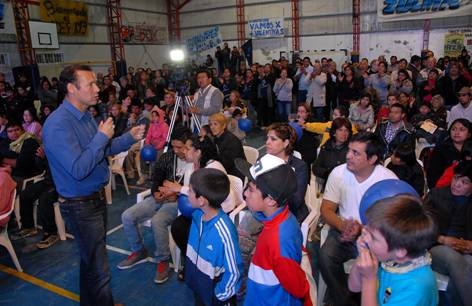 La lista Azul que encabezan Omar Gutiérrez y Rolando Figueroa realizó el miercoles por la noche una nueva muestra de participación masiva, militancia y compromiso al llenar el polideportivo del barrio Valentina Sur, a pesar del temporal de viento que se abatía sobre Neuquén capital y de la falta de energía eléctrica en ese sector ciudad desde el mediodía, como consecuencia del temporal. De hecho la luz recién volvió pasadas las 21 sin que la gente se moviera del gimnasio.