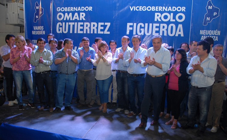 Los precandidatos a gobernador y vicegobernador por la Lista Azul, Omar Gutiérrez y Rolando Figueroa, realizaron el jueves el lanzamiento de la lista Azul en Chos Malal, acompañados por el gobernador Jorge Sapag y la vicegobernadora Ana Pechen.
